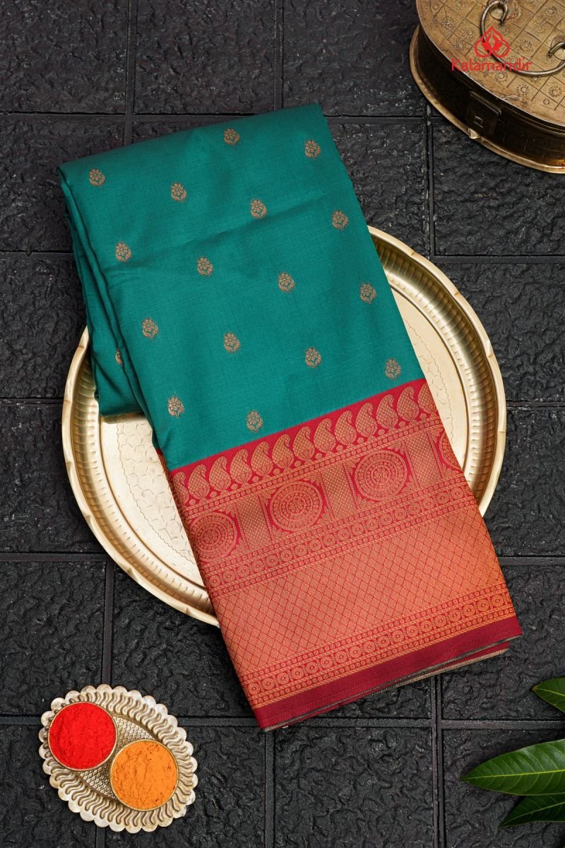 RAMA GREEN and MARRON BUTTIS SILK BLEND Saree with SEMI PATTU