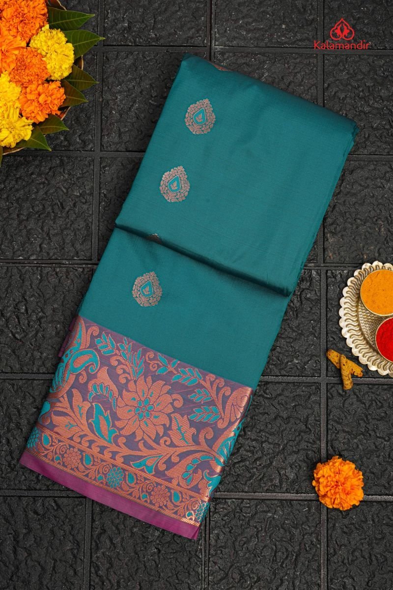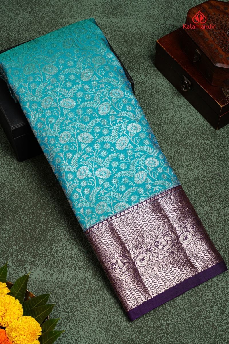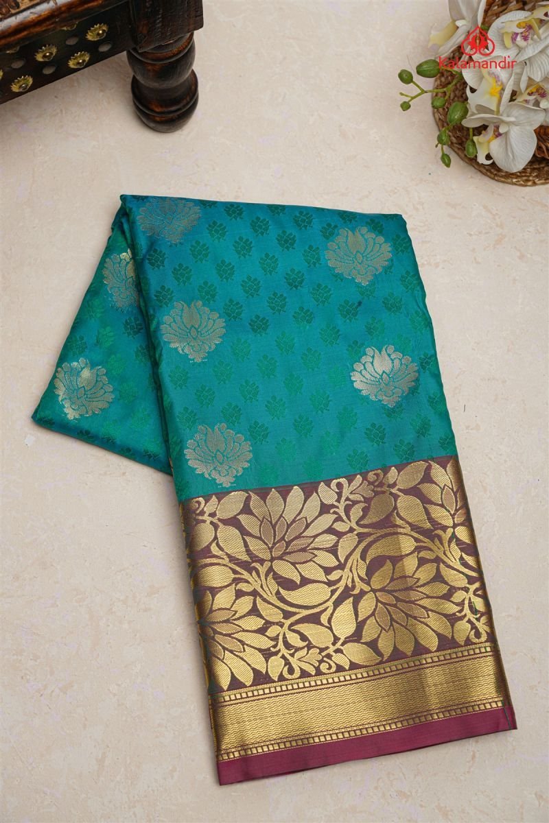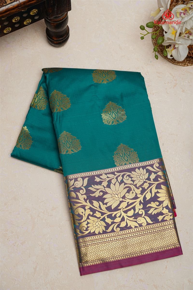 RAMA GREEN and MAGENTA FLORAL JAAL SILK Saree with SEMI KANCHIPURAM