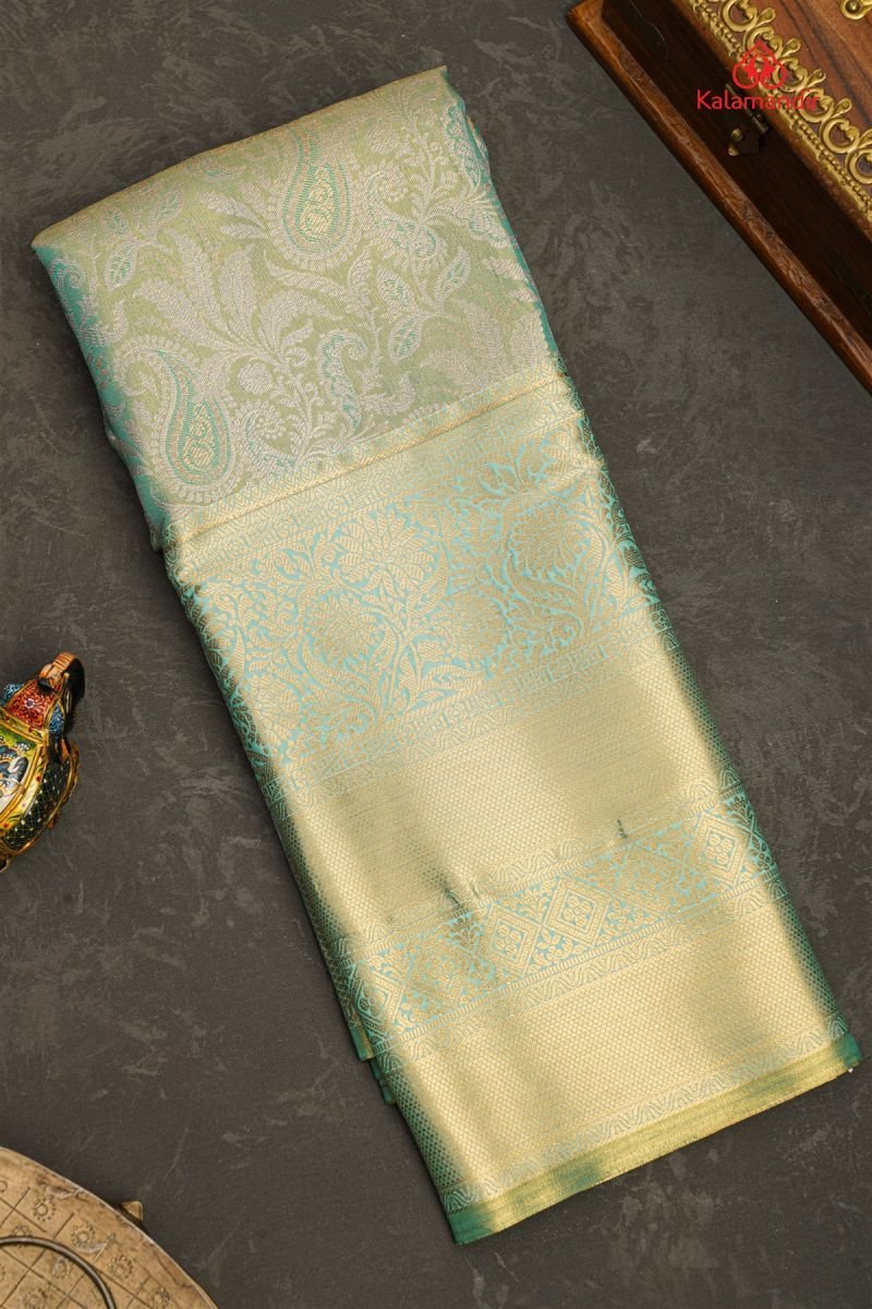 SEA GREEN and GOLD FLORAL JAAL SILK BLEND Saree with SEMI PATTU