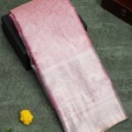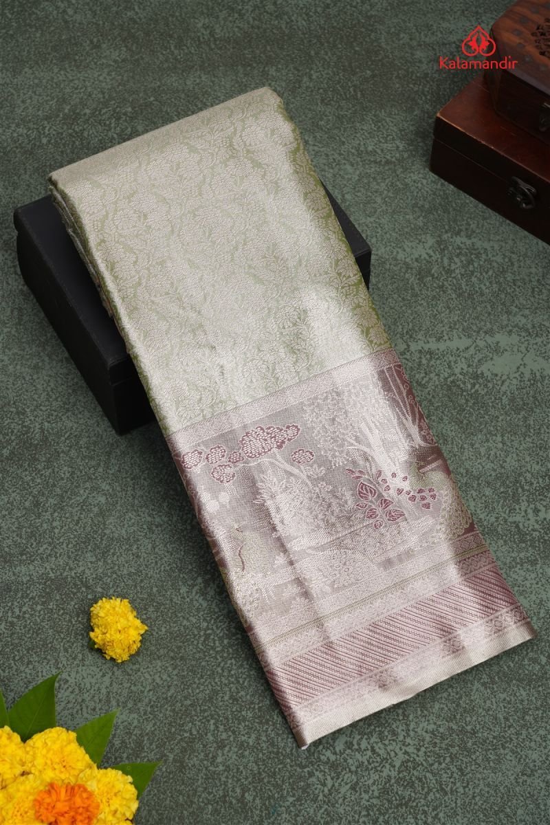 LIGHT OLIVE GREEN and BROWN FLORAL JAAL SILK BLEND Saree with SEMI PATTU
