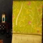 Elegant Banarasi Silk Saree crafted from pure silk with intricate zari work. Perfect for weddings, this saree includes an unstitched blouse piece for a complete look. Handwoven in Varanasi.