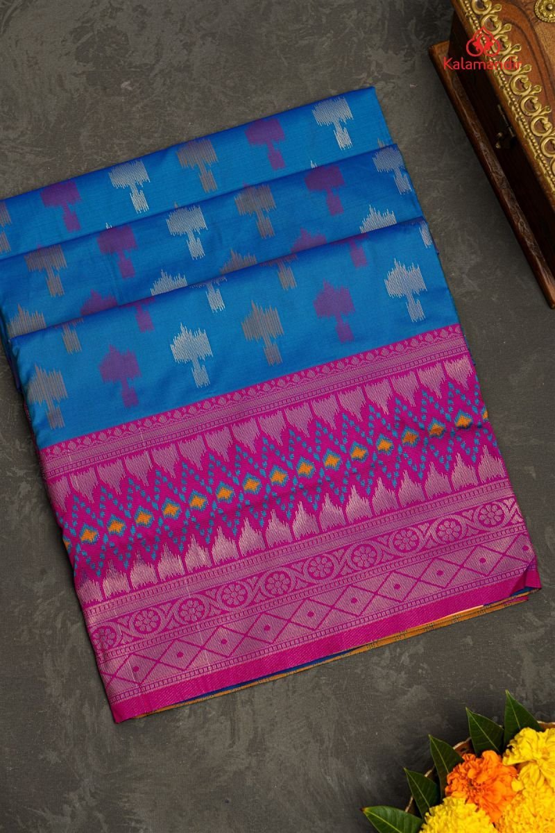 RAMA BLUE and PINK BUTTIS SILK BLEND Saree with POCHAMPALLY
